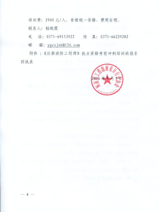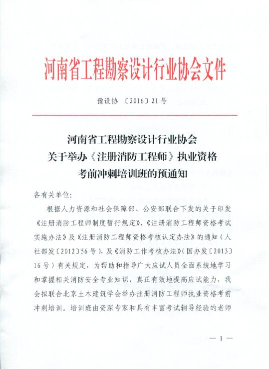 >> 河南省工程勘察设计行业协会关于举办《注册消防工程师》执业资格考前冲刺培训班的预通知