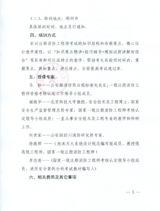 河南省工程勘察设计行业协会关于举办《注册消防工程师》执业资格考前冲刺培训班的预通知