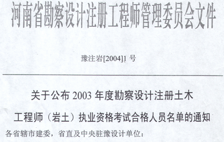 关于公布2003年度勘察设计注册土木工程师(岩土)执业资格考试合格人员名单的通知